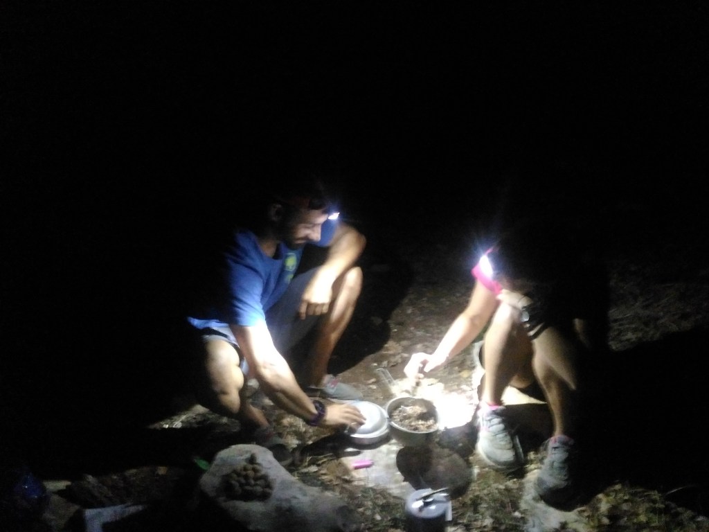 La notte cala del tutto sulla cena da campo illuminata dalle torce frontali. Lampi appaiono di tanto in tanto a disegnare nuvole in movimento all’orizzonte, e noi ci corichiamo, stanchi ma soddisfatti, al rumore dei primi tuoni.