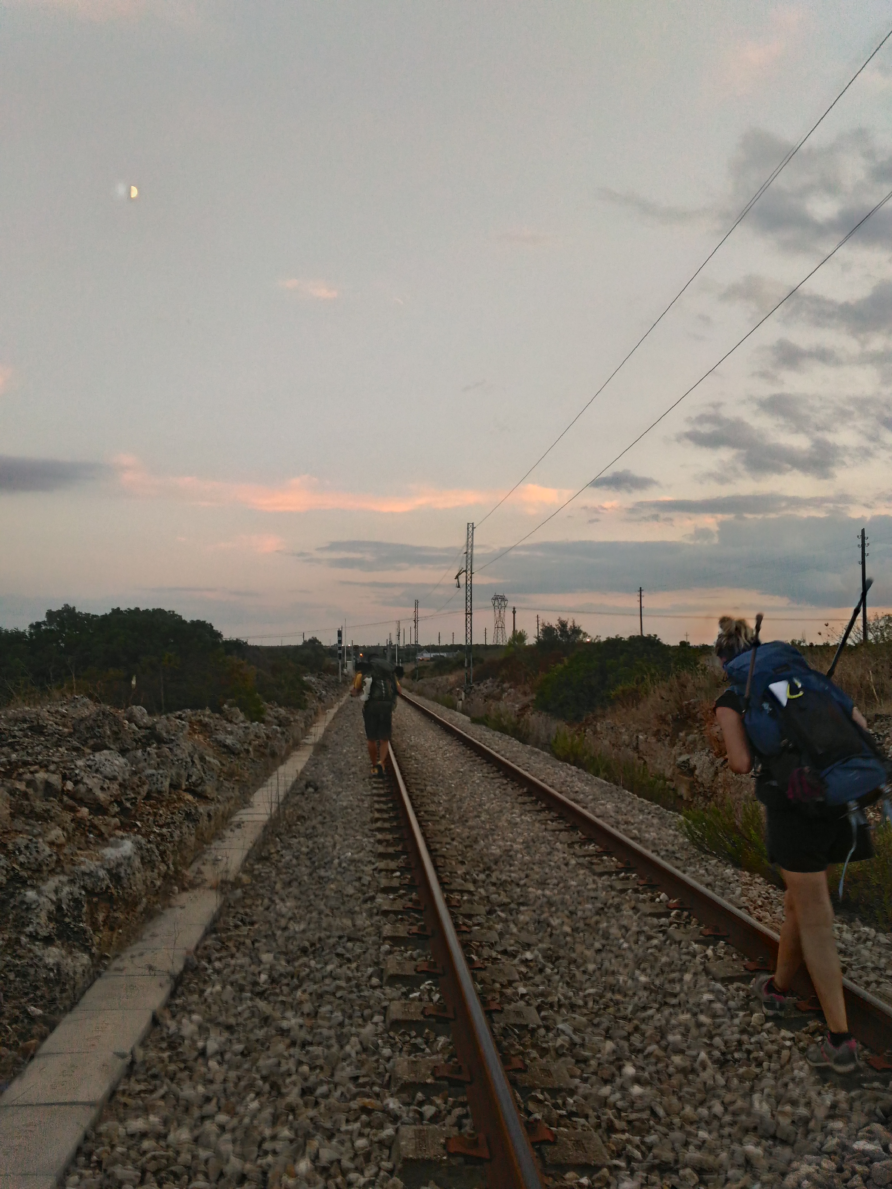 Usciamo dal bosco alle ultime luci del giorno e con ancora un bel pezzo di strada davanti. Ventotto chilometri sono veramente un’infinità, ma per stasera abbiamo prenotato un appartamento e l’idea di sentire di nuovo il contatto con qualcosa di morbido è sufficiente per continuare a camminare. Anche a costo di tagliare per i binari del treno, andando così a spuntare un’altra x nella nostra particolare “to do list” del viaggio improvvisato.
