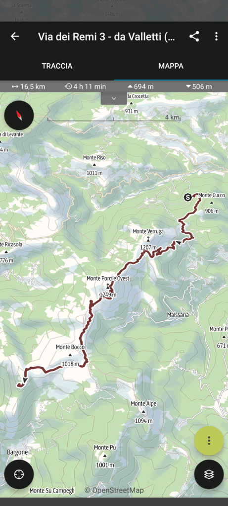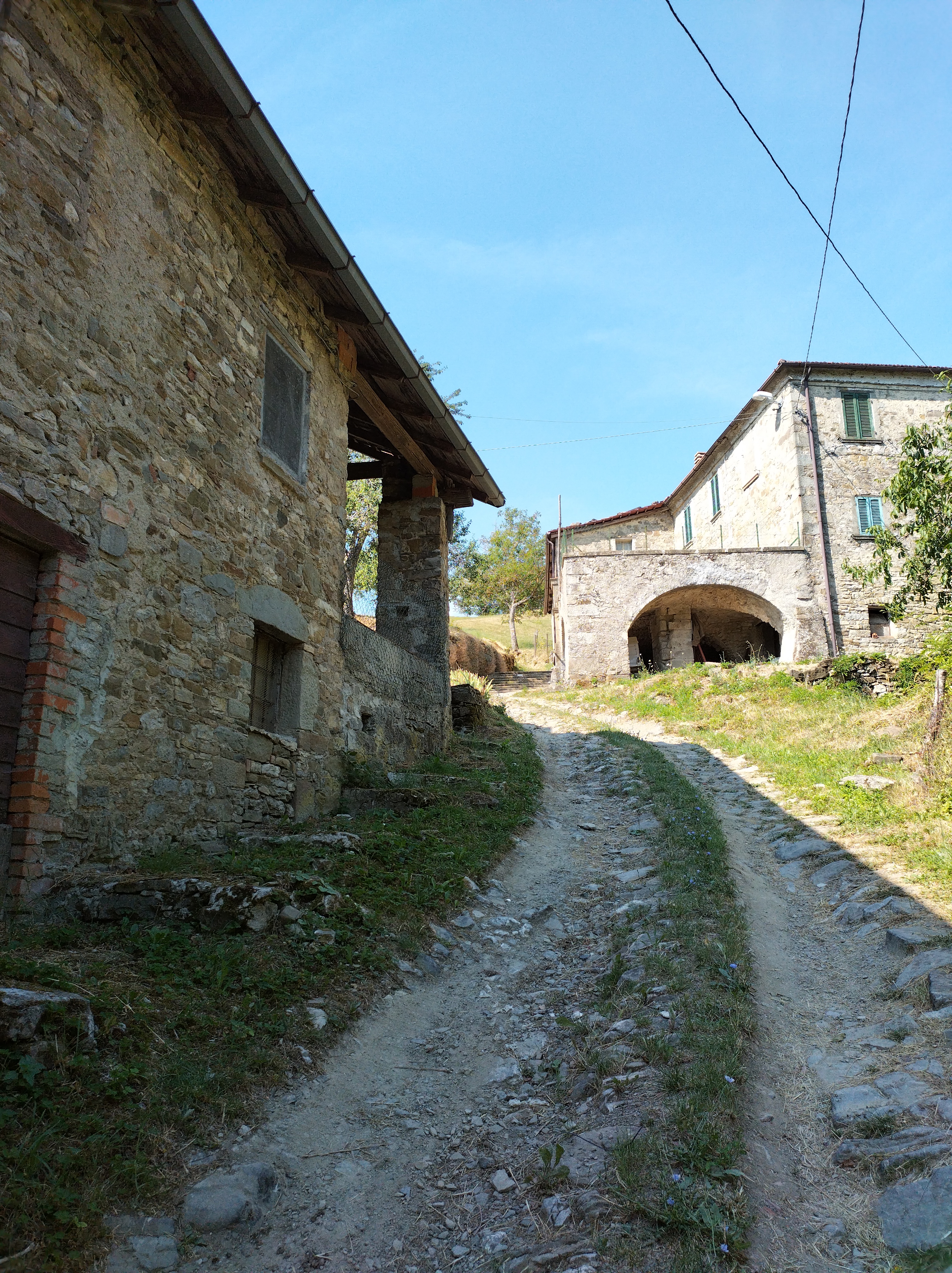 In uno di questi paesi, Cardeto, due signori fermi a chiacchierare davanti a casa mi chiedono se ho paura dei lupi per portarmi appresso quel bastone recuperato tra le legnaie del Bagastese. Non si devono vedere spesso camminatori lungo questa strada (e ti credo, aggiunge il ginocchio sinistro già messo alla prova dall’asfalto in discesa), perciò sono uno dei primi a parlare loro, con un certo orgoglio, della nuova Via dei Remi.