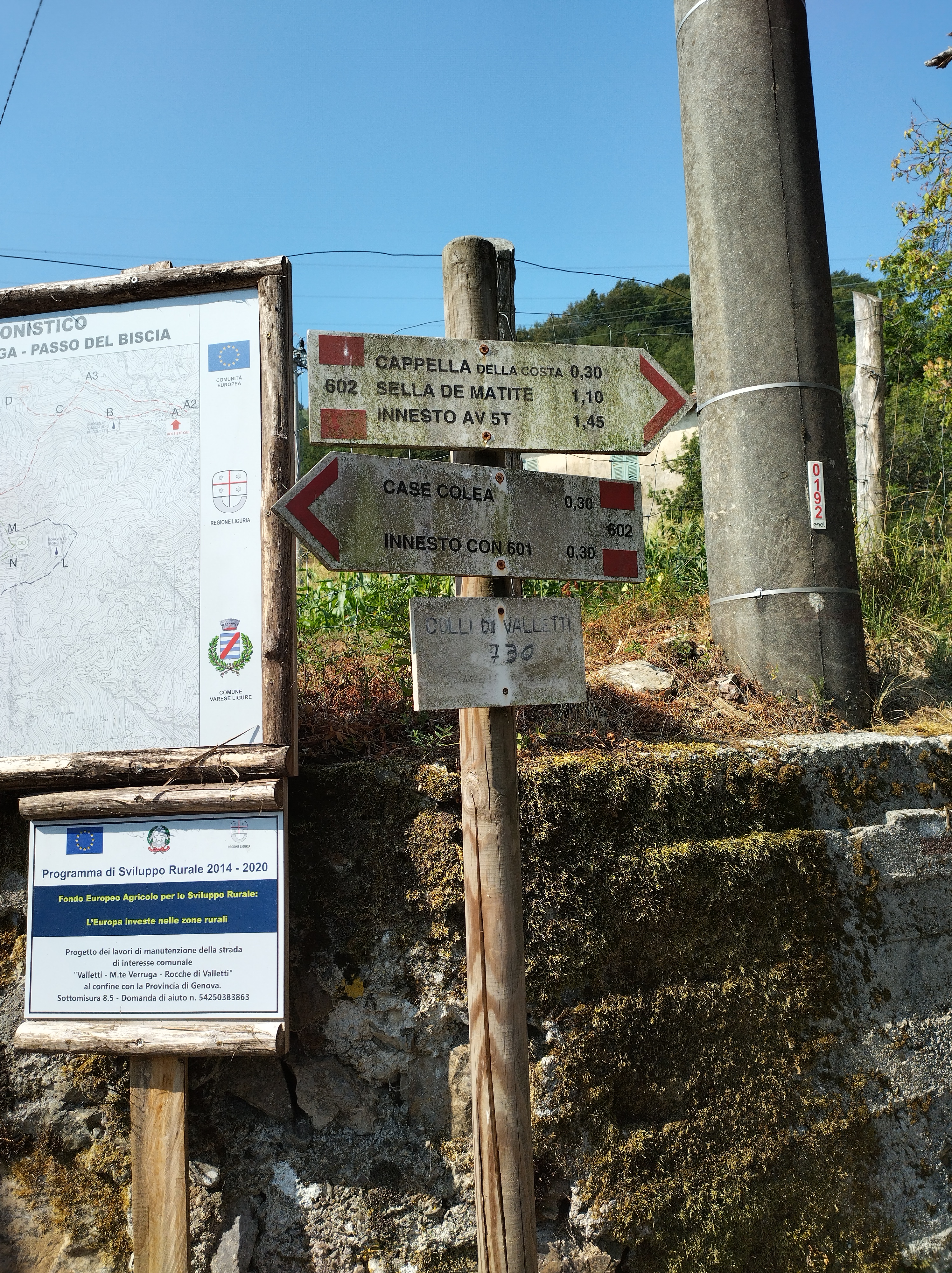 Oggi devo partire presto: dopo una polverosa notte in tenda stasera mi aspetta il comfort di un agriturismo, ma non prima di aver aggiunto un buon pezzo alla tappa di oggi, che in teoria fermerebbe a Varese Ligure. Il pensiero di un letto ad attendermi è un ottimo sprone ad andare avanti e mettersi in marcia presto: d’altra parte, scomparsi i ragazzi, nel paese non c’è ancora nulla di aperto. Meno male che mi ero fatto qualche scorta ieri sera al mio arrivo, prima di passare buona parte del tempo fino al tramonto al bar Al bar eto (semplice, efficace e divertente).