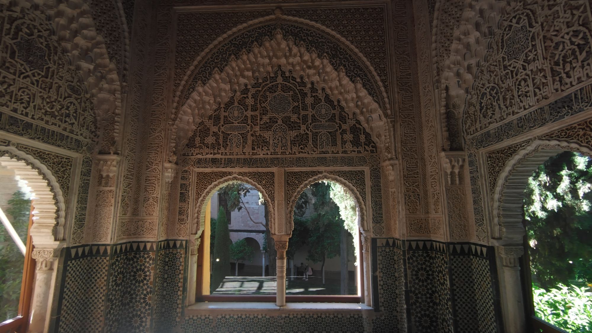 Arabeschi. Arabeschi dappertutto, fiori colorati nei giardini dell’Alhambra, architetture moresche che si rispecchiano nei laghetti; il nome di dio scritto sui muri tra gli arabeschi e sul pavimento, dove una volta non ci poteva stare, per non essere calpestato. Arabeschi tracciati sulla schiena, nel buio dell’hammam, dalle piccole mani della massaggiatrice che si è presentata sussurrando il nome di mia madre: cosa leggono le mani nelle curve rigide di questa schiena? Il tempo di chiederselo e già la luce del giorno ci richiama di nuovo fuori dalle grandi vasche di acqua calda e gelida nella penombra illuminata dalle candele.